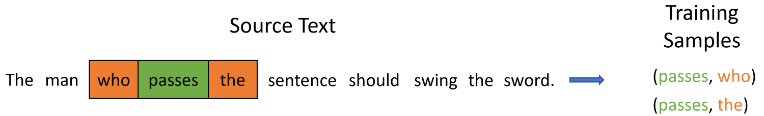 - ①在指定窗口大小内共同出现的词$w_i,w_j$具有相似的语义